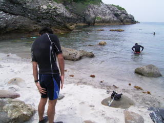 エイ遭遇に気をよくしながらも、波の具合もあり、大浦海岸へさくっと帰還。