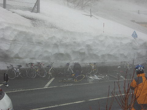 2合目を通過したあたりで、道路わきにとけ残った雪を発見。