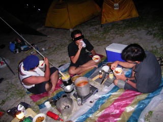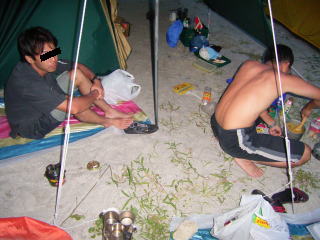 やがて、砂浜に寝転がって、イメージを開放し尽くした男達はテントへと移動。