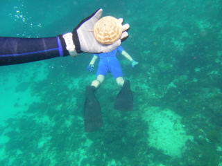 しかし、今日は苦戦したらしく、別の魚を追っている際に、ハリセンボンに銛を刺してしまい