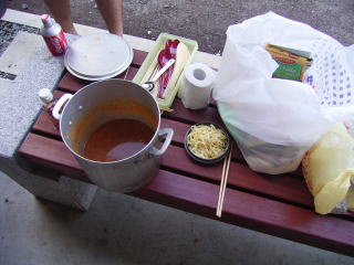 胃袋に10秒チャージしつつ、キャンプ場撤収完了。