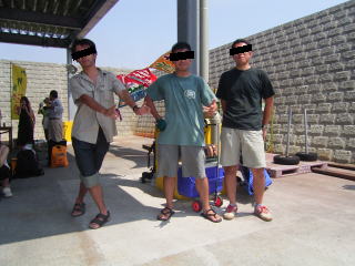 YANYA隊長のバイクで、港へのピストン輸送を行う間に、