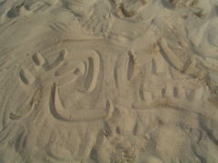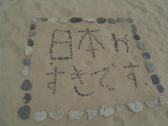 キャンプ場の砂浜にこんな文字が!!!